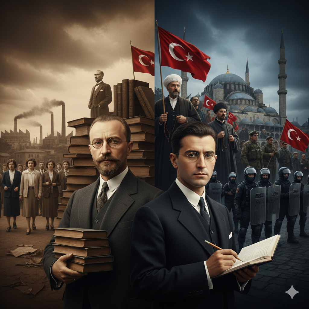 Dil ve Tarih-Coğrafya enstitülerinden Halkevleri’ne uzanan kültür politikaları, Cumhuriyet’in rıza ayağını güçlendirmeyi hedefledi. Fakat Serbest Cumhuriyet Fırkası deneyimi ve sonrasındaki muhafazakâr reaksiyon, toplumsal dokuda modernleşmeye karşı “sessiz” rezervi görünür kıldı (8). Troçki’nin modern karşı-devrim tezi, yalnızca silahlı kalkışmaları değil, piyasanın ve küçük mülk sahibinin gündelik kaygılarını da içerir: fiyatlar, vergi, mülkiyet ve cinsiyet rejimindeki dönüşüm; hepsi karşı-devrimin ideolojik yakıtı olabilir (1). Gramsci açısından ise Halkevleri gibi kurumlar, “sivil toplumda mevzilenme” çabasıydı; fakat tarikat ve cemaatlerin gündelik dayanışma ağları, yerel meşruiyet ve duygudaşlık kanallarında daha köklüydü (4)(5).